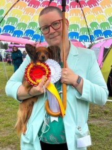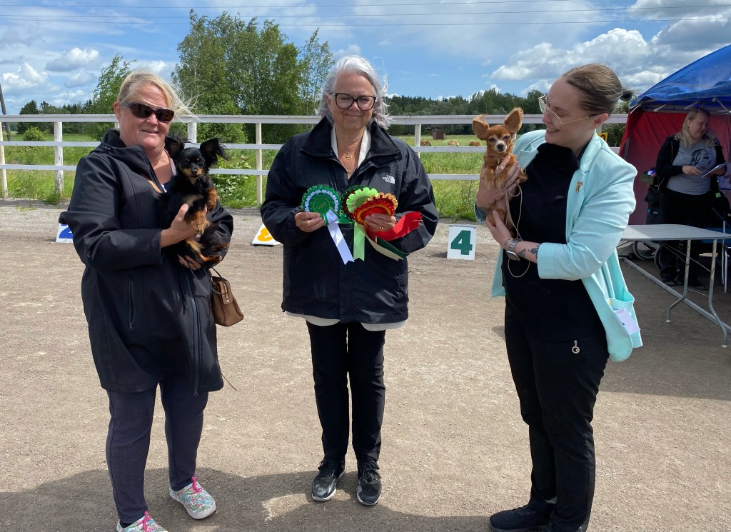 Rentouttavan mökkiviikon päätteeksi kävimme pyörähtämässä lähinäyttelyssä hienoin tuloksin. Näyttelypäivä oli lämmin ja kehän laidalla seura hyvää. Päivän kruunasi Jouko Leiviskä ja harjoitustuomari Satu Ylä-Mononen, jotka arvostivat Novaa ja antoivat meille ihanan arvostelun, sekä kivan kehäkokemuksen. Hienosti mummeli jaksoi vielä molemmat ryhmäkehät kaiken päätteeksi.