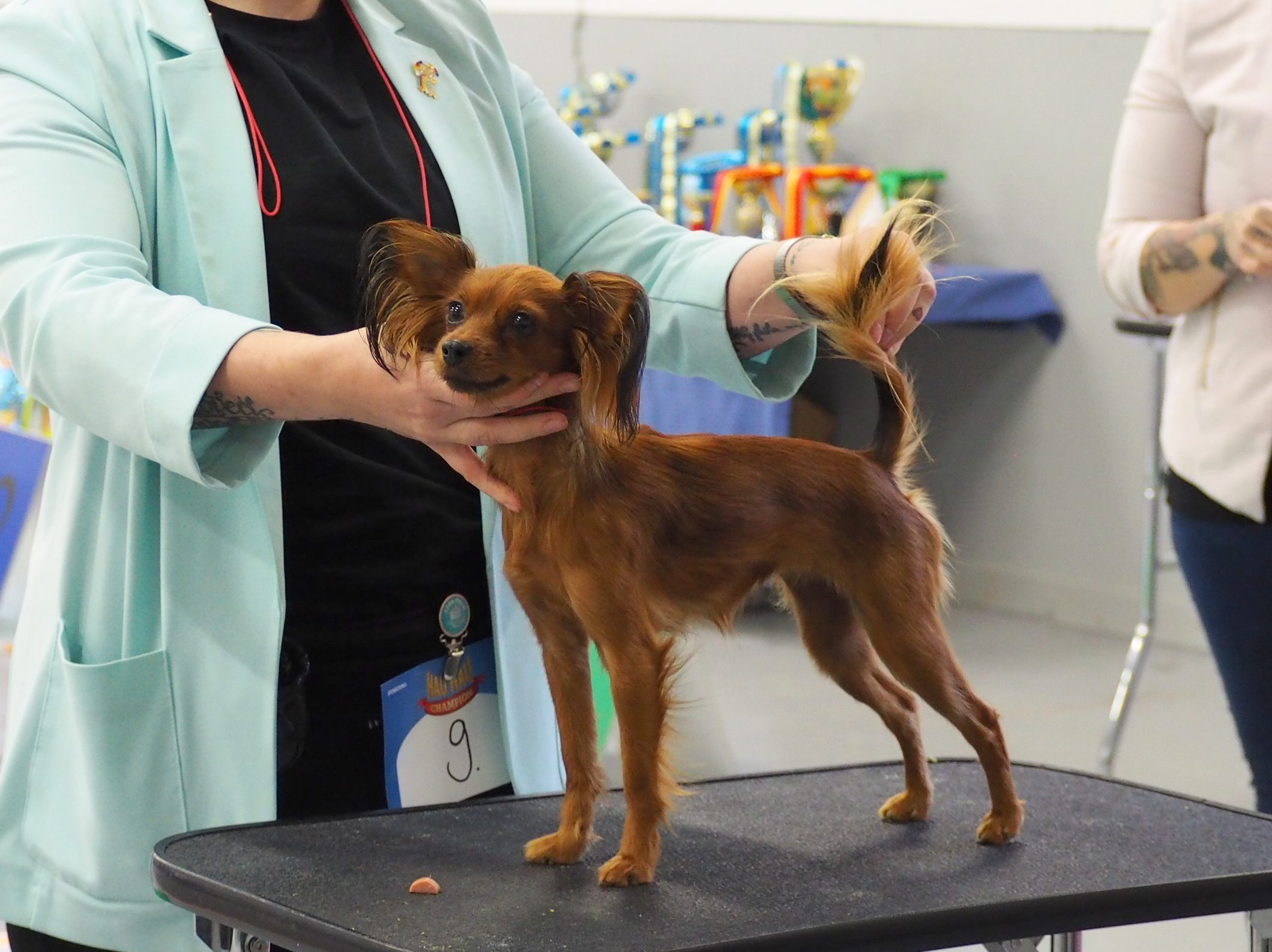 Arvostelu: ”Tasapainoinen kokonaisuus. Hyvä pää. Kuono-osa voisi olla silmien alla täyttyneempi. Hyvät korvat, kauniit korvakoristeet. Hyvä kaula. Ylälinja voisi olla sulavampi. Hyvä runko ja luusto. Liikkuu reippaan vapaalla askeleella.”